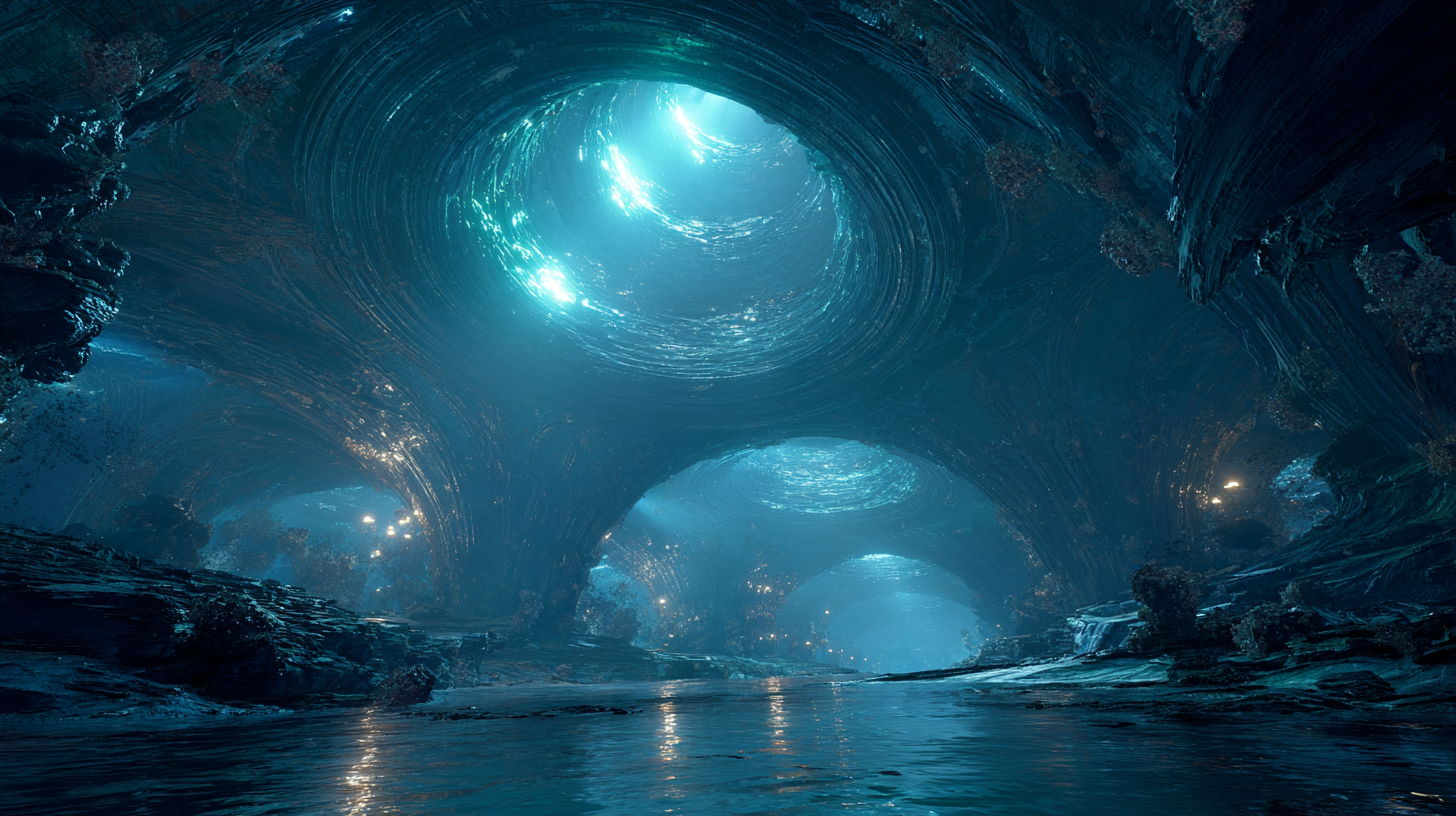 The interconnected tunnel structure beneath the oceans fractured under pressure and began filling with water. The liquid seeped deep into the heart of the planet's metal core and sent its gravitational forces into shock. Fissures of steam erupted, pounding their way up through earth, rock, and crust until they broke through to the ocean floors and boiled any creature in the vicinity alive.