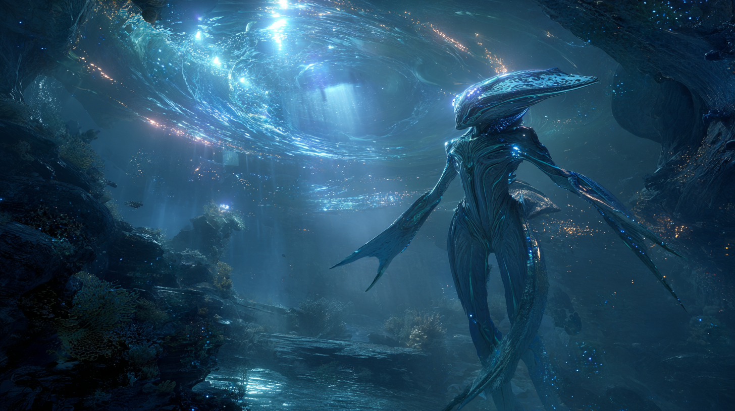 They were renowned for this natural ability throughout the galaxy and used their talent to connect worlds and spread their wisdom and light. The Spades relied on the naturally-formed tunnels under their oceans to traverse space and time. Each tunnel was a vortex of water that, like a portal, led to another ocean, sea, or body of water on another world, or even to concentrations of water within nebulas.