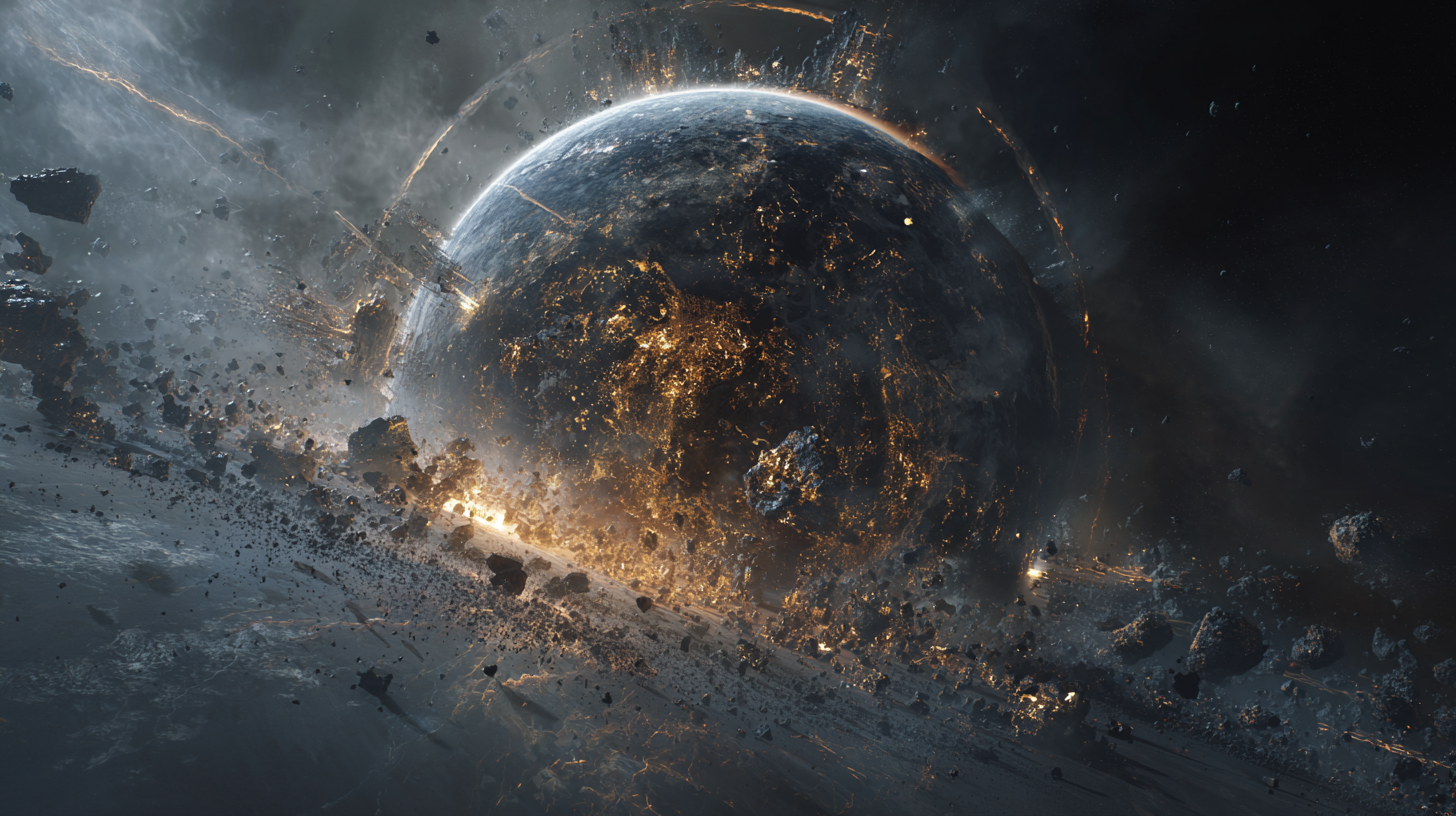 Their world looked like a stellar dragon had taken a large bite out of it. Molten lava streamed out into space, cooling and hardening into a deadly labyrinth of new asteroids and satellites. Massive pockets of steam erupted through the atmosphere and immediately froze into comet-sized spears of ice with the potential to puncture our hull. As we approached, our instruments detected only a few pockets of life left on the planet. We got to work.