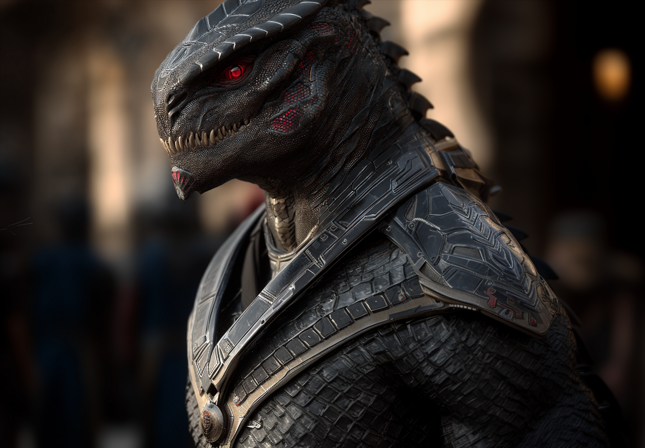 They were reptilian in nature. Slick, polished scales in a variety of sizes covered every exposed inch of their humanoid bodies, the rest was covered in thick layers of metallic armor. Pointed teeth and sharpened claws glinted through the window, illuminated by the light of Vega.